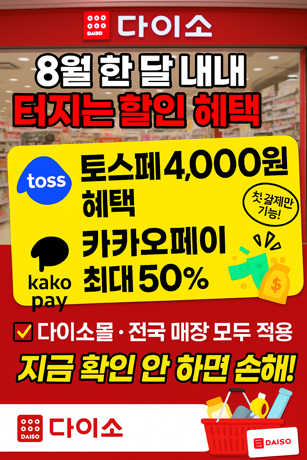 [다이소 8월 혜택 총정리] 토스페이·카카오페이 결제 시 할인·적립 꿀혜택!