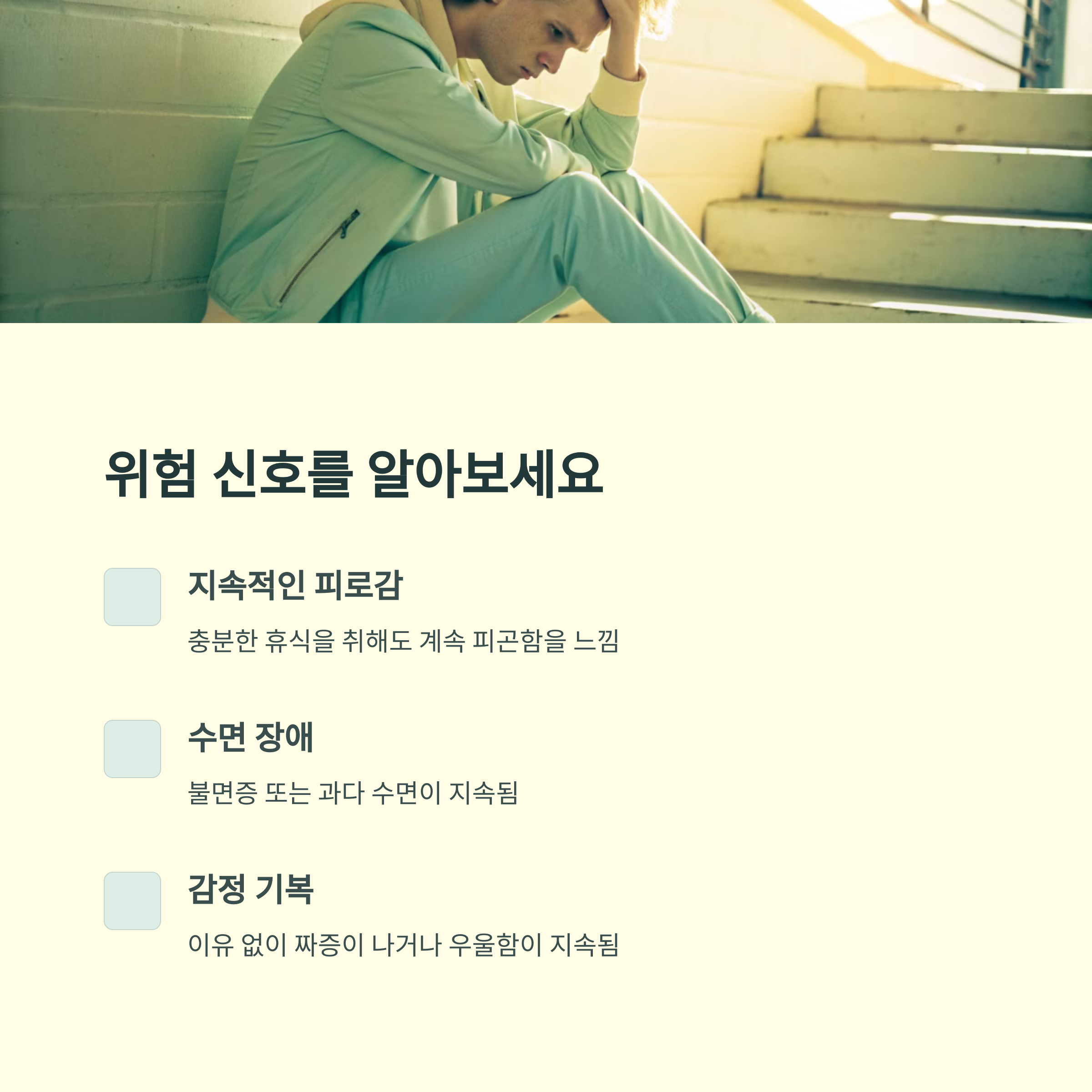 | 감정 기복 | 이유 없이 짜증이 나거나 우울함이 지속됨 |