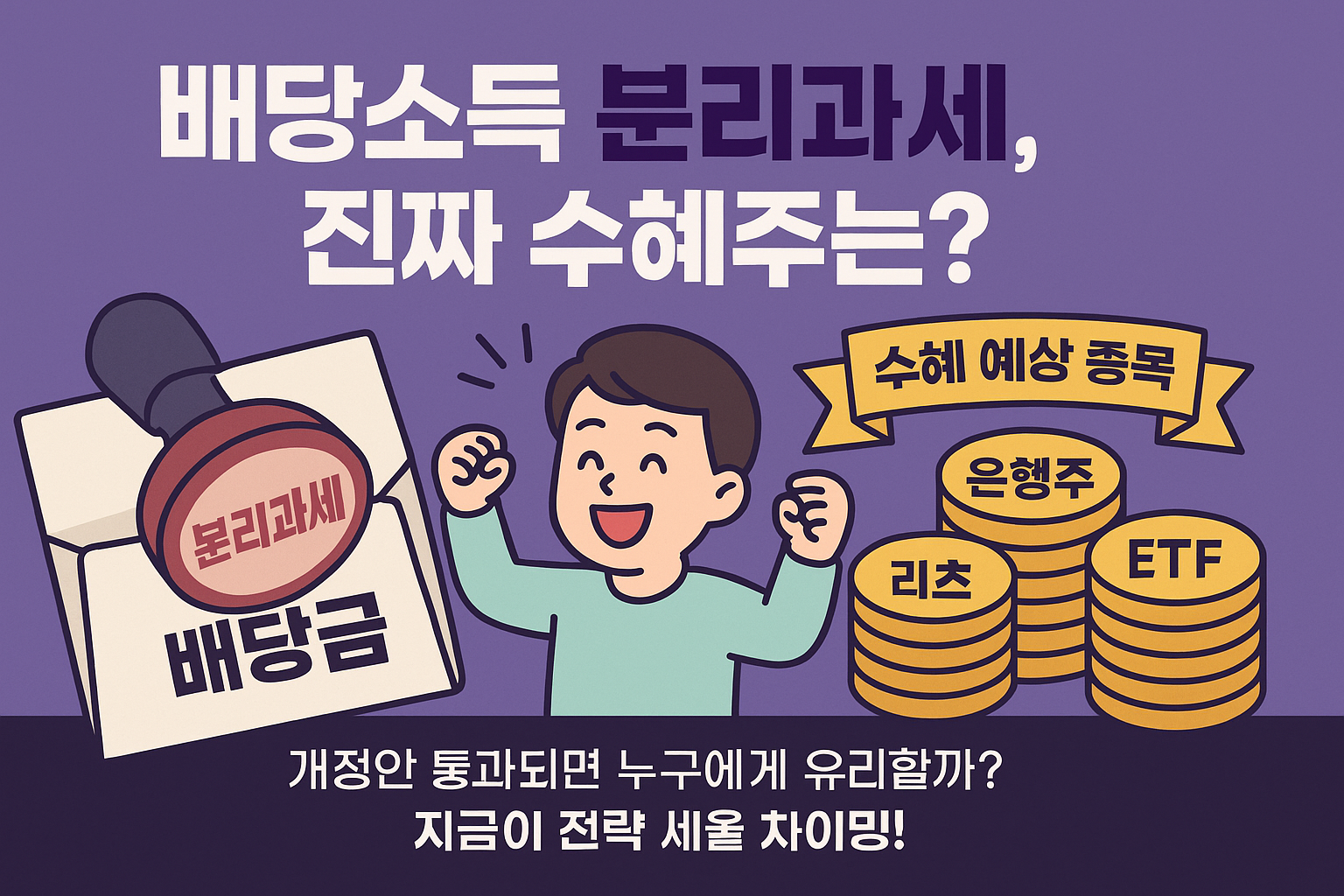 안녕하세요 여러분! 요즘 증시 분위기, 참 복잡하죠. 게다가 정부가 배당소득 분리과세 개정안을 들고 나오면서 투자자들의 관심이 집중되고 있는데요. 저도 처음엔 "좋은 건가?" 하고 말았지만, 자세히 뜯어보니 이건 단순한 세법 변화가 아니더라고요. 특히 리츠나 ETF, 금융주, 그리고 배당 성향 높은 종목에 투자한 분들에겐 큰 기회일 수도 있겠다 싶었습니다. 그런데 한편으론 ‘세금 회피 수단’이라는 비판도 들리고요. 그래서 오늘은 이 복잡한 배당소득 분리과세 개정안, 수혜주는 누구인지, 건강보험료와는 어떤 관계인지, 핵심 쏙쏙 뽑아 정리해봤습니다!