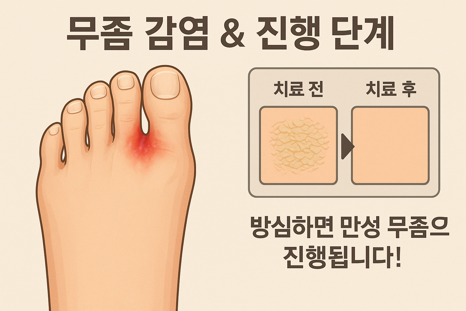 무좀은 자연치유가 어렵기 때문에 치료는 필수예요. 외용제를 쓰더라도 최소 2~4주 정도 꾸준히 발라야 하고, 손발톱까지 번졌다면 먹는 약을 병행해야 한답니다. 치료 중간에 나았다고 약 끊으면 다시 재발하기 딱 좋아요!