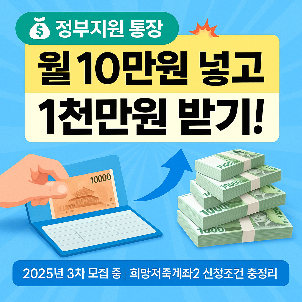 월 10만원 넣고 1천만원 받기?희망저축계좌2 신청조건·서류 총정리