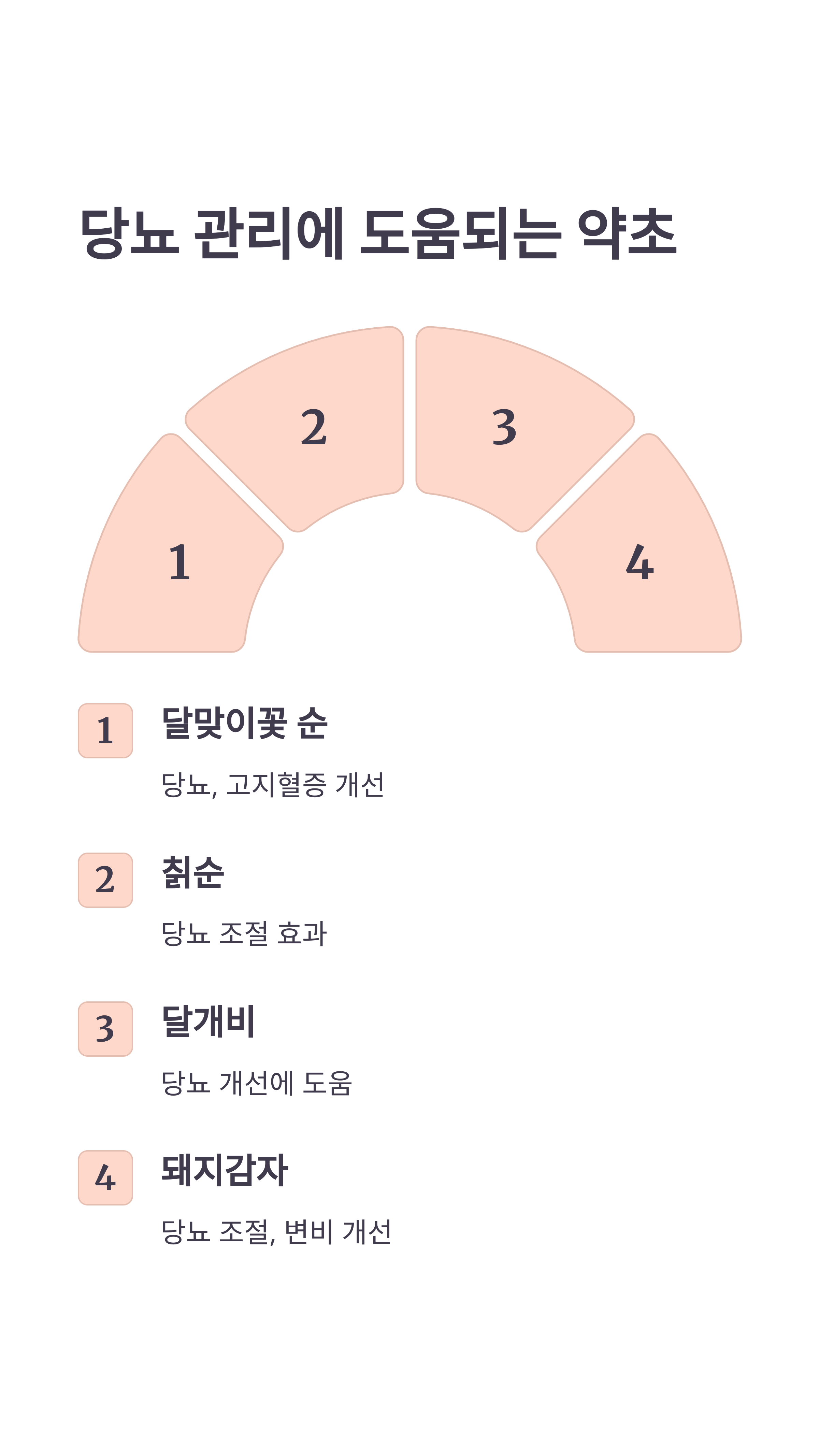 | 칡순 | 혈당을 안정적으로 유지하는 데 도움을 줍니다. |