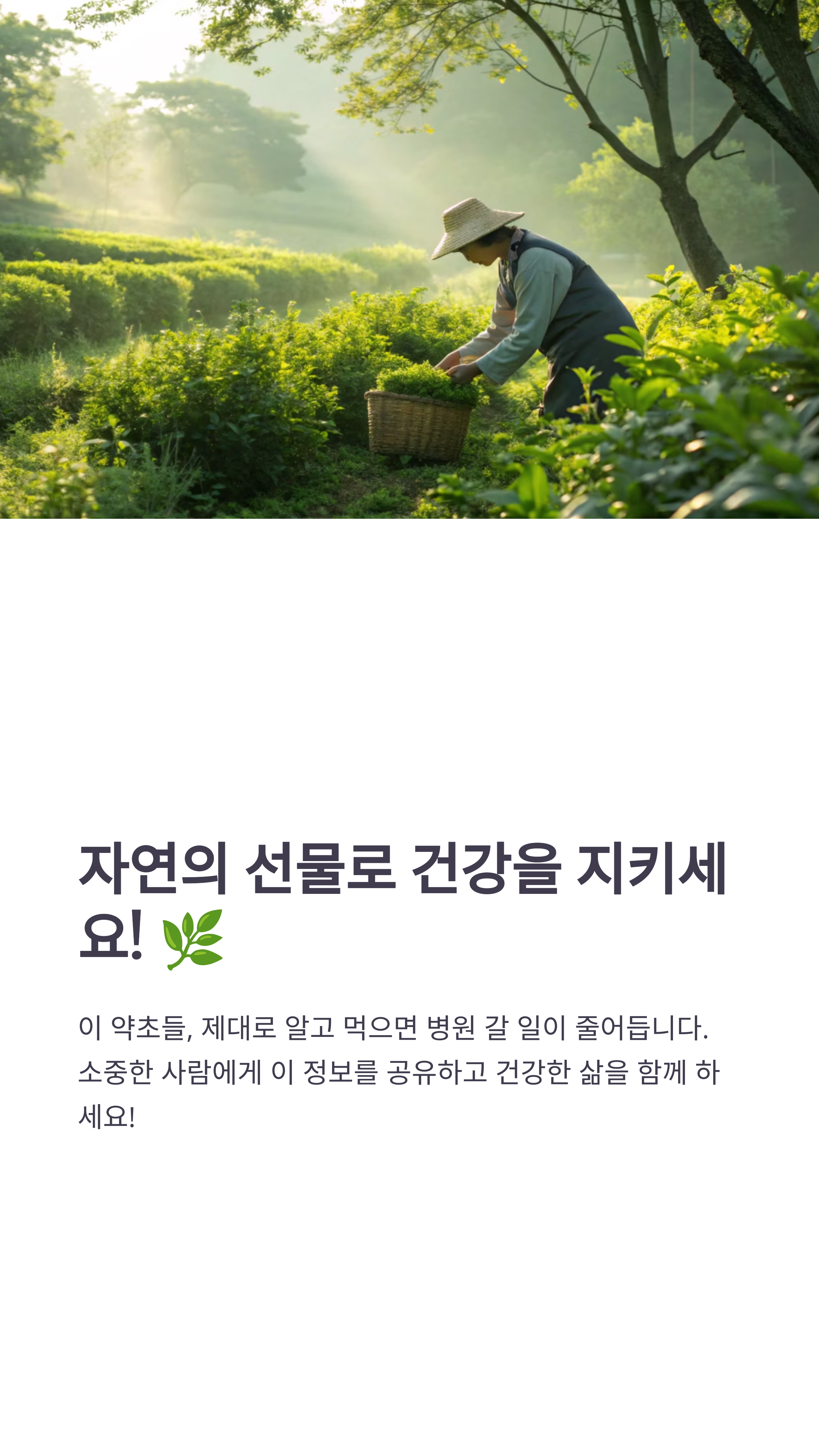 오늘 소개한 약초들이 여러분의 건강 관리에 도움이 되길 바랍니다! 앞으로도 더 많은 건강 정보를 공유할 예정이니,