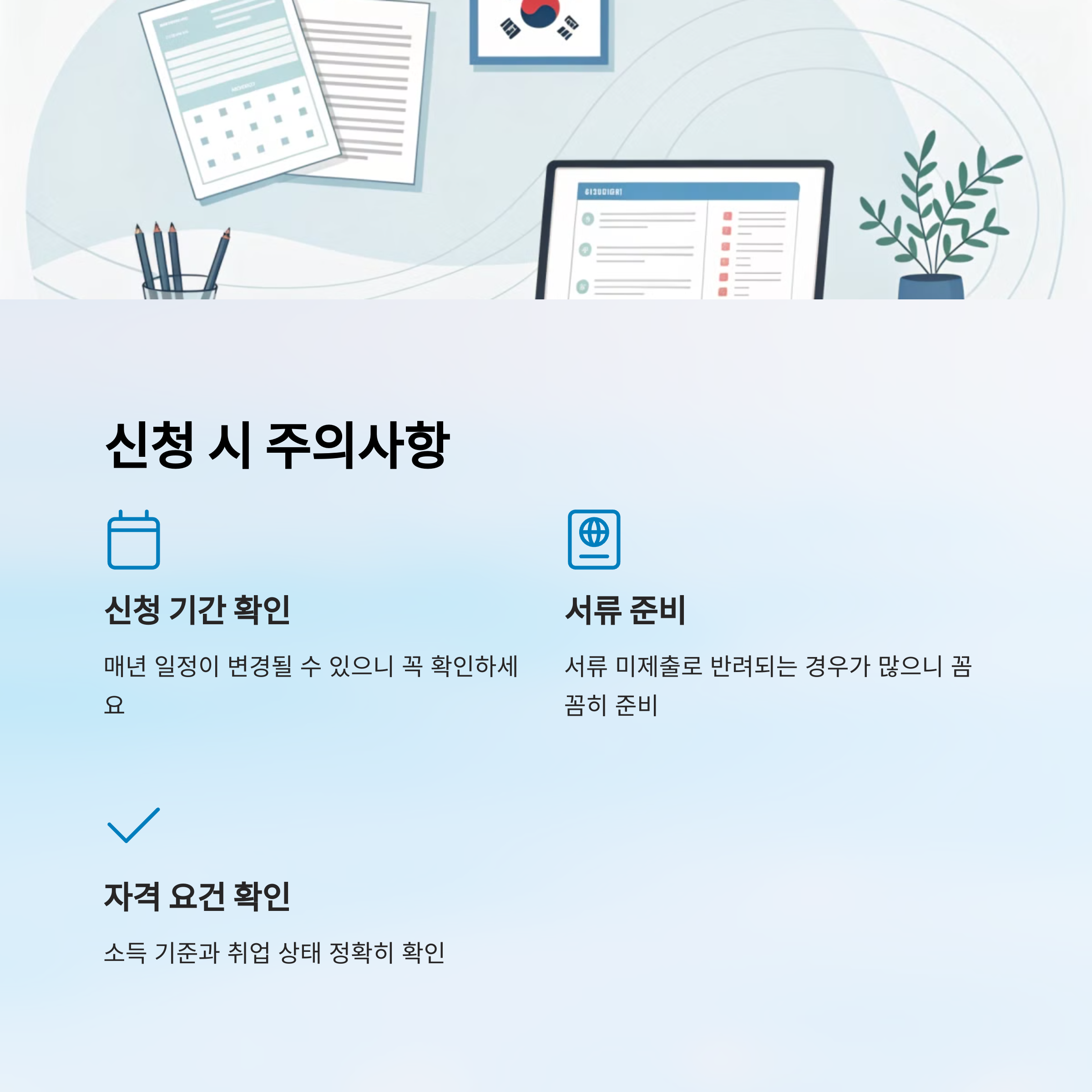 - 신청 기간을 꼭 확인하세요! (매년 일정이 변경될 수 있음)