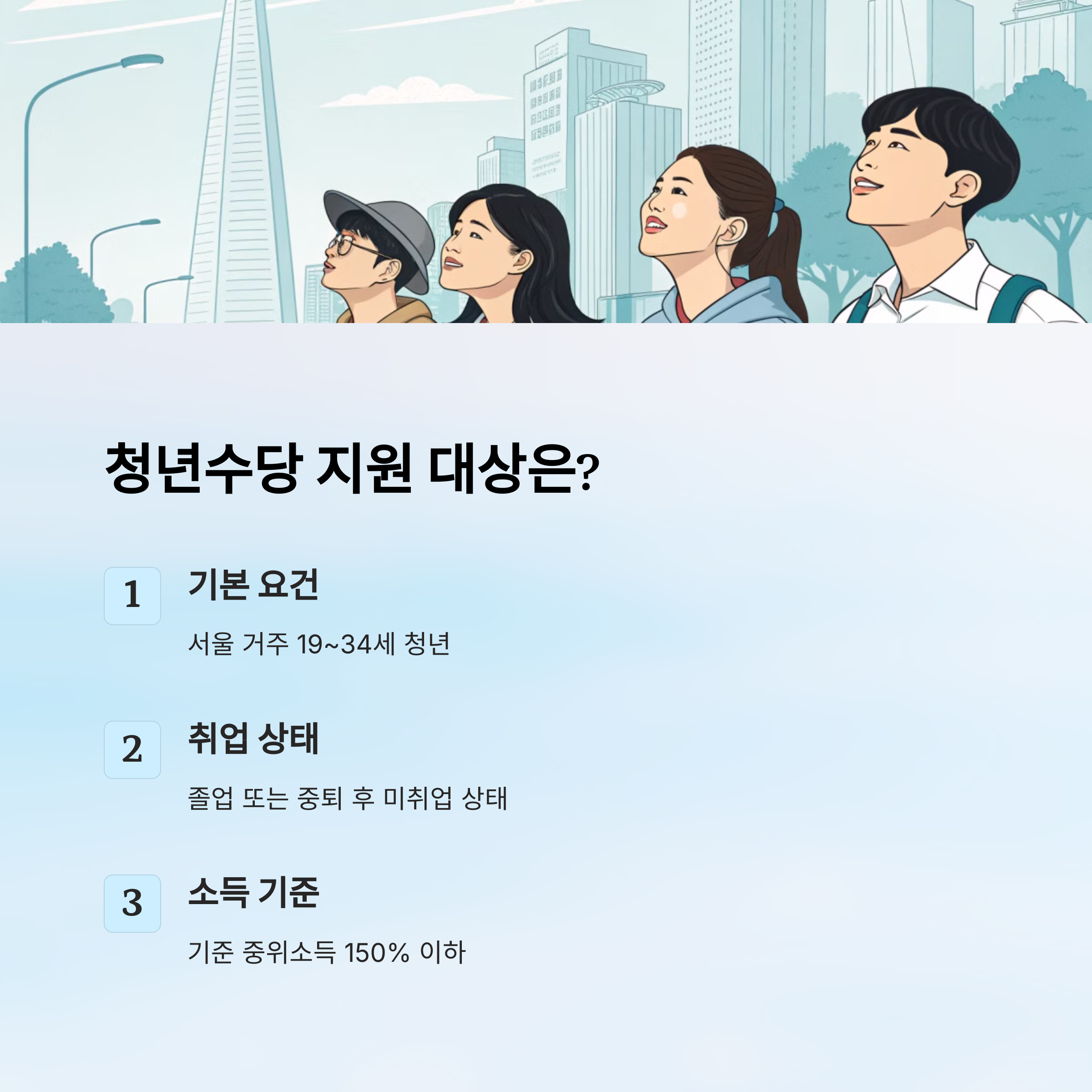 | 서울 거주 청년 | 만 19세~34세 | 기준 중위소득 150% 이하 |