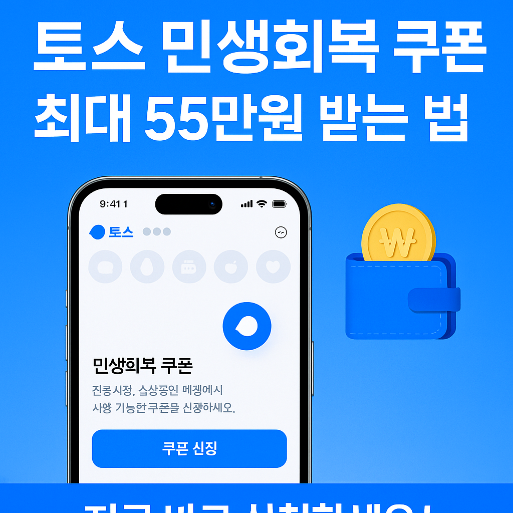 토스 민생회복 쿠폰은 정부가 물가 부담을 조금이라도 덜어주려고 만든 지역/소비 쿠폰이에요. 전통시장이나 골목상권, 소상공인 가게에서 쓸 수 있고요. 개인 조건에 따라 최대 55만원까지 지원받을 수 있답니다.