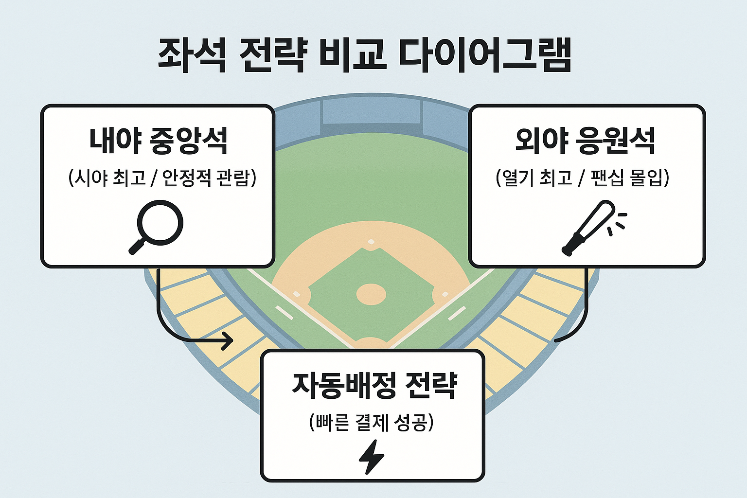 - 내야 중앙석 : 시야 확보 최고 → 안정적인 직관