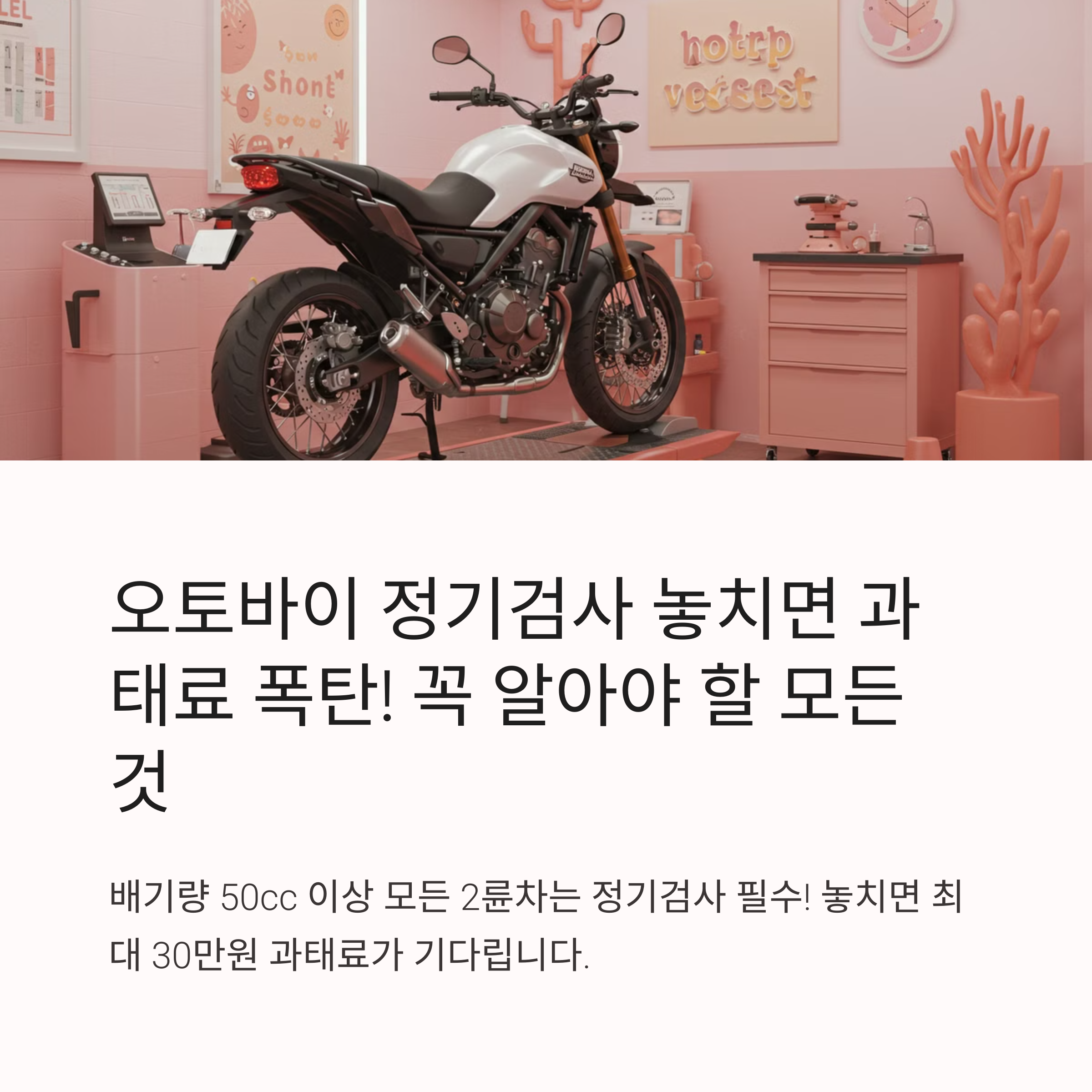오토바이를 타는 분들이라면 반드시 기억해야 할 것이 바로 '정기검사'입니다. 놓치면 과태료가 발생할 수 있다는 사실, 알고 계셨나요?