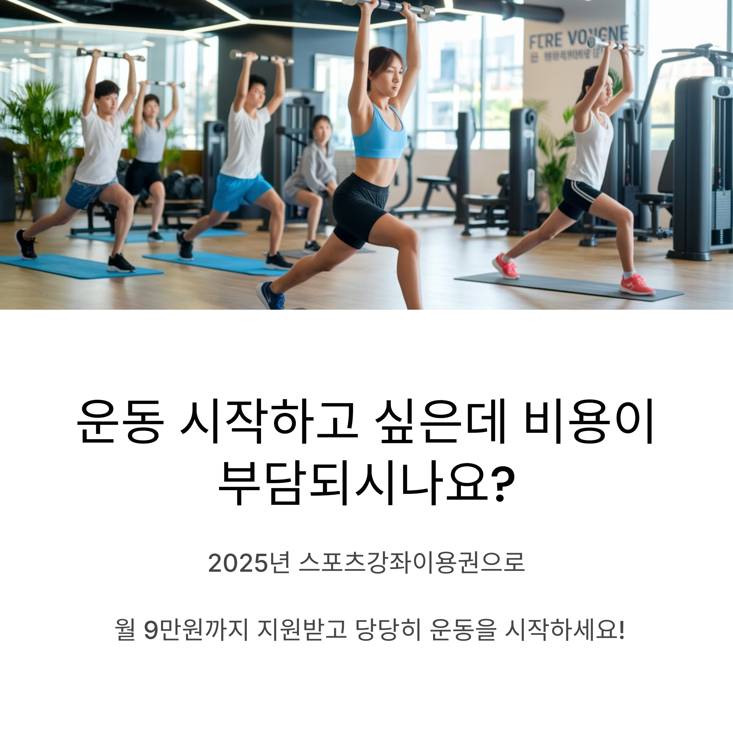 운동하고 싶은데 비용이 걱정되셨나요? 2025년 스포츠강좌이용권이라면 월 9만원까지 지원받고 당당히 운동 시작할 수 있어요!