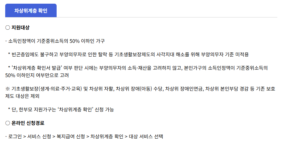 2025년 차상위계층 조건 확인 혜택 지원금 신청 바로가기