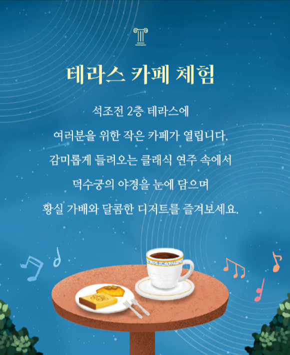 - 2층 테라스 카페: 고종의 ‘가배’ & 황실 디저트 제공
