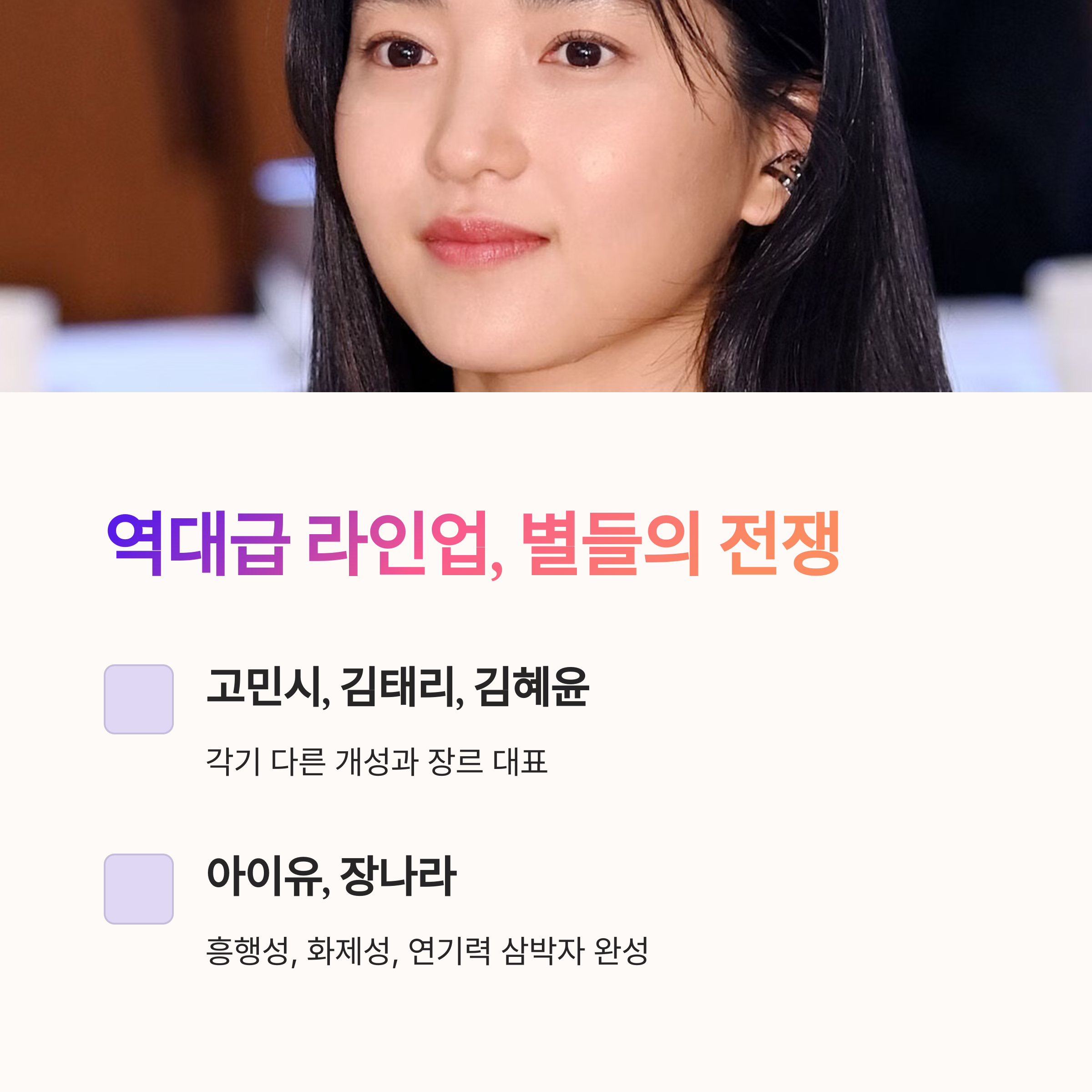 - 2순위: 아이유 (감성 자극 + 최근작 임팩트)