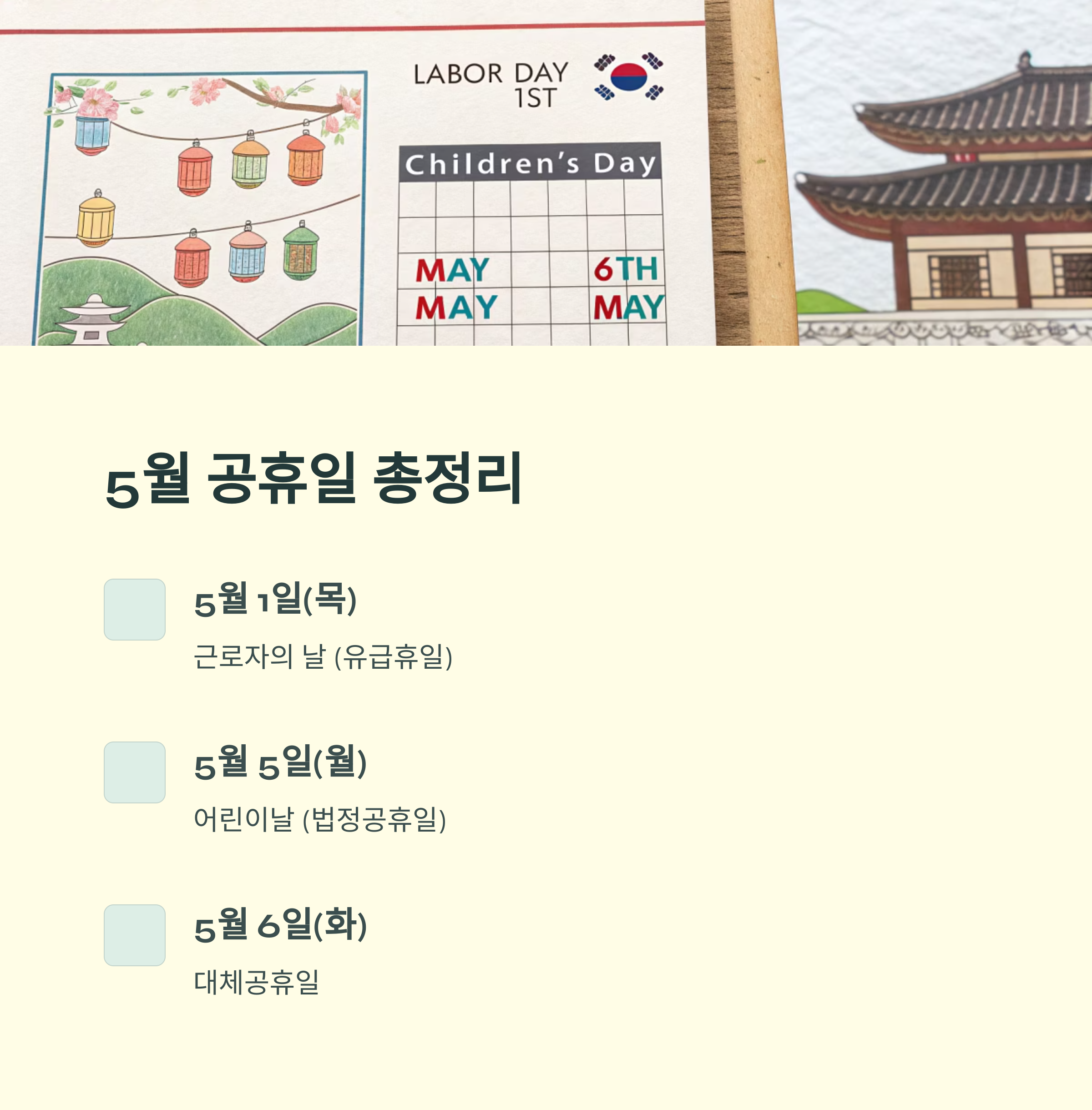 헷갈리기 쉬운 5월 연휴 관련 궁금증들, 미리 체크해두면 불안함 없이 연휴를 누릴 수 있어요!
