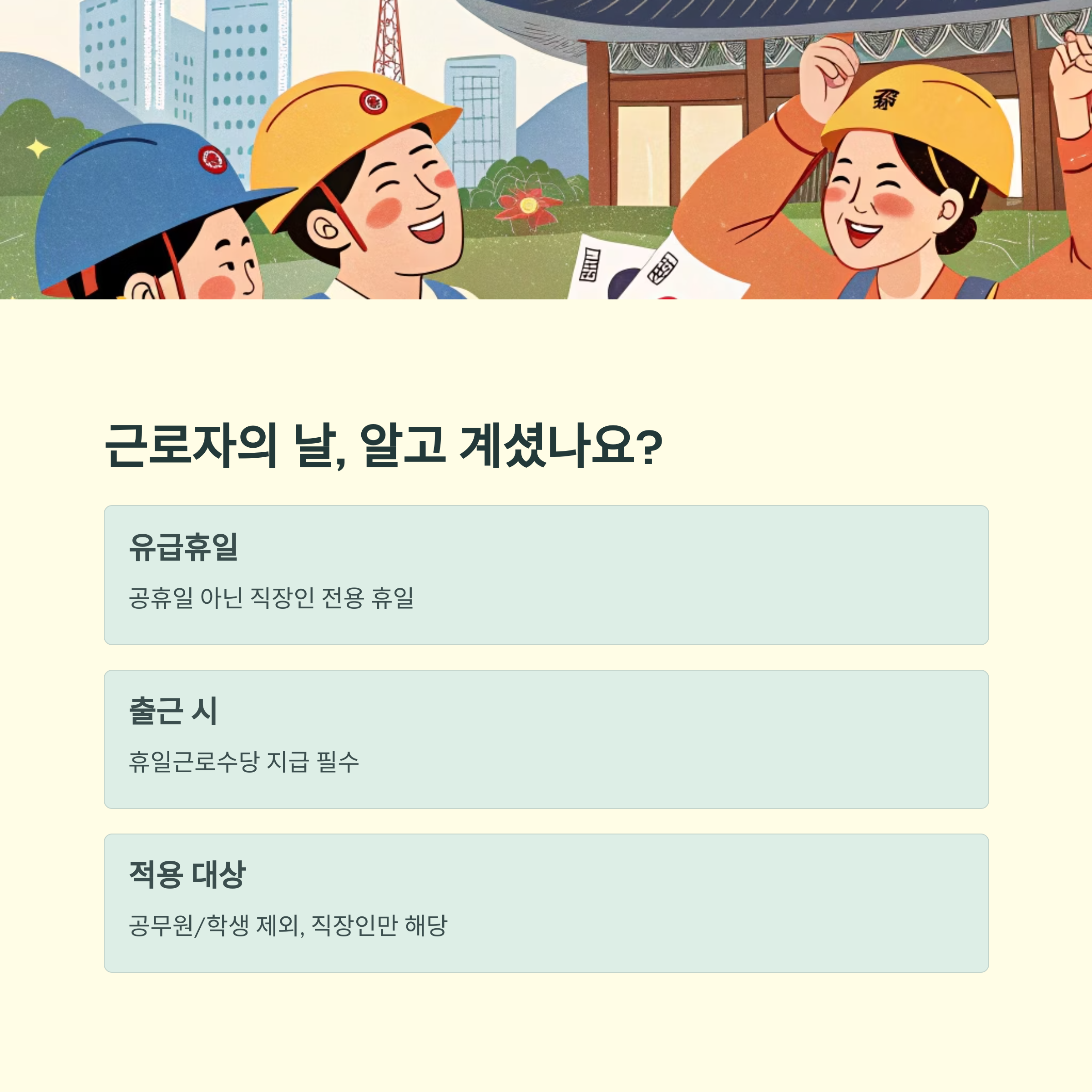 | 근로자의 날 | 직장인 유급휴일 (공무원/학생 해당 없음) |