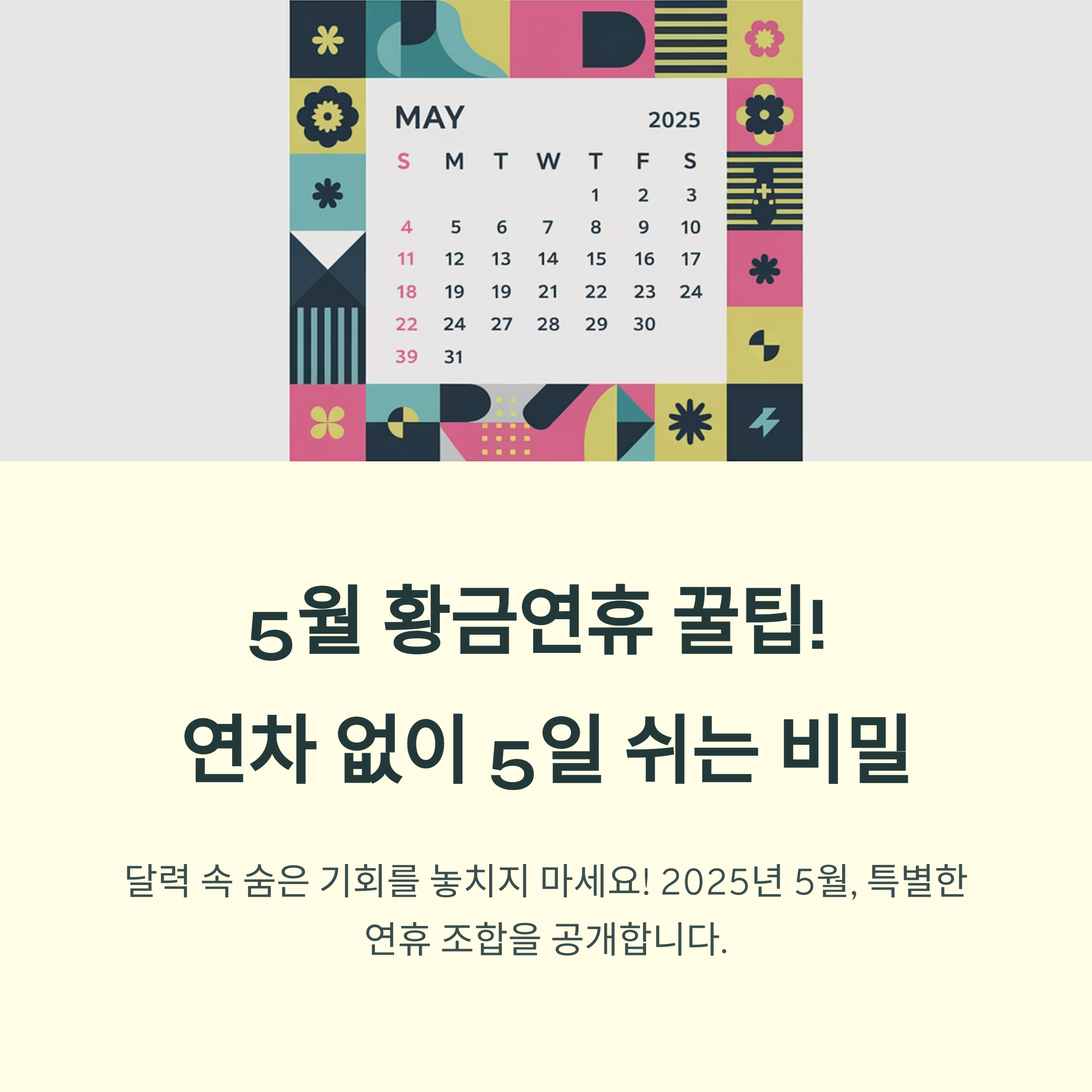 이번 5월, 연차 한 장 없이 쉬고 싶다면? 아래 조합을 눈여겨보세요. 연차 1개만 추가해도 5일 연휴가 순식간에 생겨납니다!
