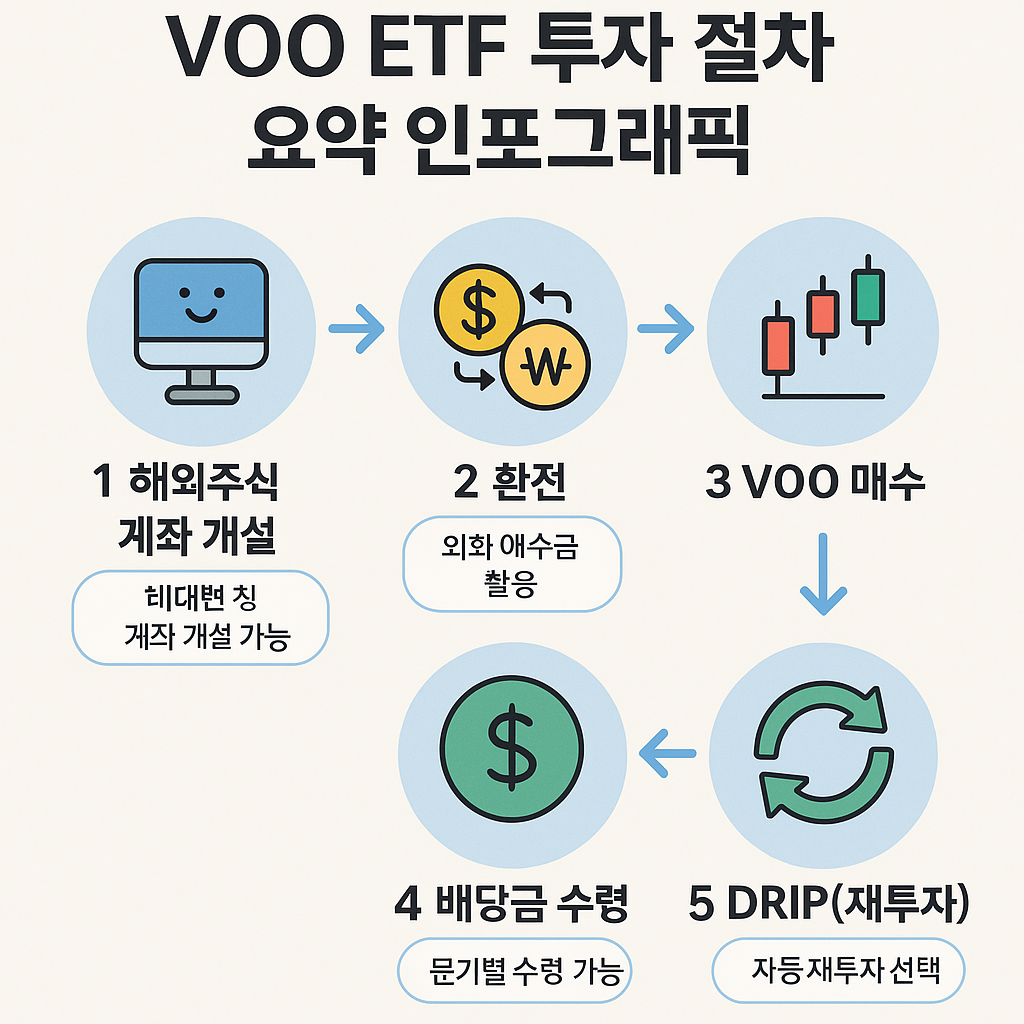 VOO를 사려면 먼저 해외 주식 거래 계좌를 만들어야 해요. 저도 처음엔 어렵게 느껴졌는데 막상 해보면 생각보다 간단합니다. 계좌를 만들고 원화를 달러로 환전한 뒤 증권사 HTS나 MTS에서 VOO를 검색해 원하는 수량만큼 매수하면 끝! 특히 초보자분들은 주문 후 배당금 수령과 환전 수수료 등을 꼼꼼히 체크하는 게 좋습니다.